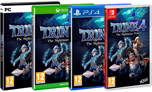En parallèle de la sortie de Trine 4, une compilation baptisée Trine 4 : The Ultimate Collection 1-4 rassemblant les 4 opus sort. Elle est proposé au tarif de 46€99 avec en plus 2€35 reversés en super points sur PlayStation 4 et Xbox One, de 43€68 avec en plus 2€18 reversés en super points sur PC et au tarif de 49€99 avec en plus 5€00 reversés en super points sur Nintendo Switch, la compilation sera disponible le 8/10/2019 sur: