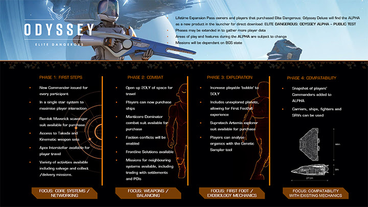 La phase Alpha d’Elite Dangerous : Odyssey sur PC comprend * :