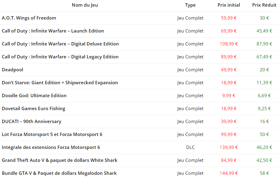 Comme tous les mardis, de nouvelle promotion sont dévoilées sur le marché Xbox Live. Cette semaine, des réductions sur Call of Duty: Infinite Warfare et Forza Motorsport 6 pour la Xbox One. Quant à la Xbox 360 nous avons du Call of Duty: World at War.