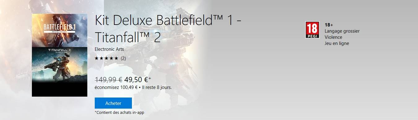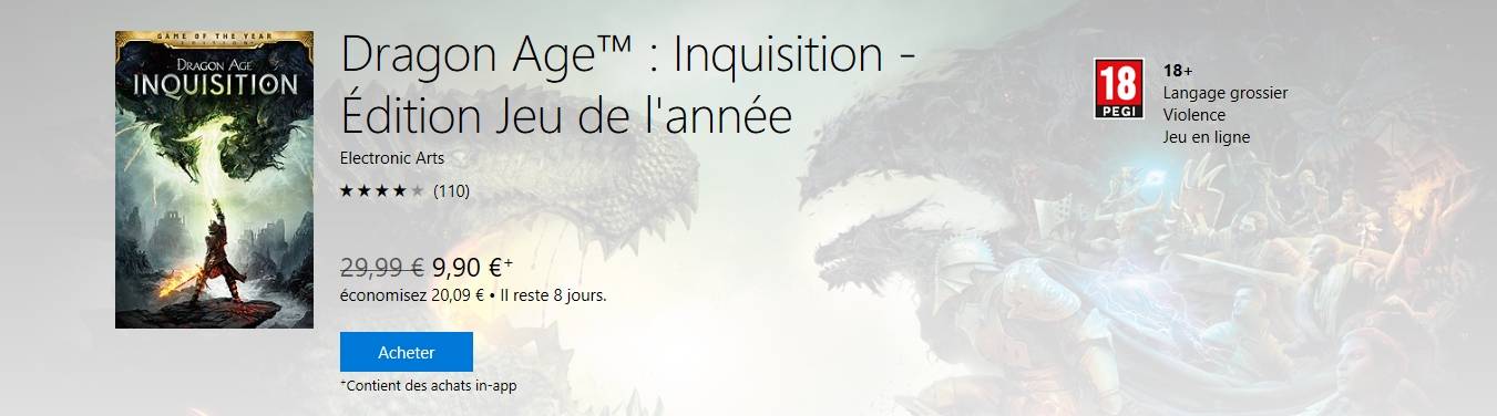 Comme tous les mardis, de nouvelle promotion sont dévoilées sur le marché Xbox Live. Cette semaine, des réductions sur Battlefield 1 et FIFA 17 pour la Xbox One. Quant à la Xbox 360 nous avons du Dragon Age: Origins et Call of Duty Black OPS II.