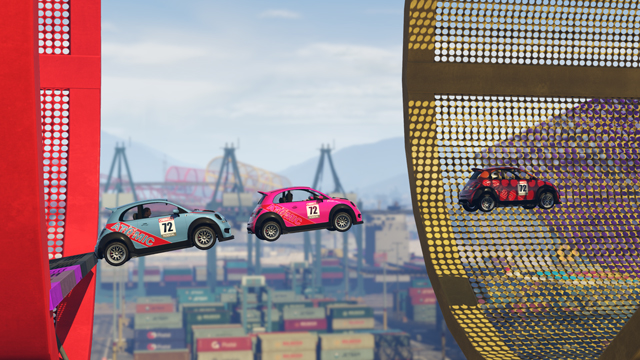 « Rejoignez des courses casse-cou à grande échelle où vous pourrez surplomber l’horizon de Los Santos ou vous envoler entre les pales traîtresses du parc d’éoliennes RON Alternates. Au travers de toutes nouvelles courses à haut risque, Les véhicules foncent dans des loopings et des tubes, s’élancent sur des rampes à toute vitesse, se rejoignent et se séparent au détour de nombreuses voies, et se précipitent à travers des anneaux de feu gigantesques. Les sauts, les fossés, le terrain et les obstacles de chaque course ont été adaptés aux attributs de chacune des classes de véhicule, dont des nouvelles supersportives, voitures de sport et motos. Et évidemment, les véhicules de course hauts en couleur méritent des conducteurs parfaitement vêtus de nouveaux équipements de motocross, combinaisons de course, casques et autres éléments […] »