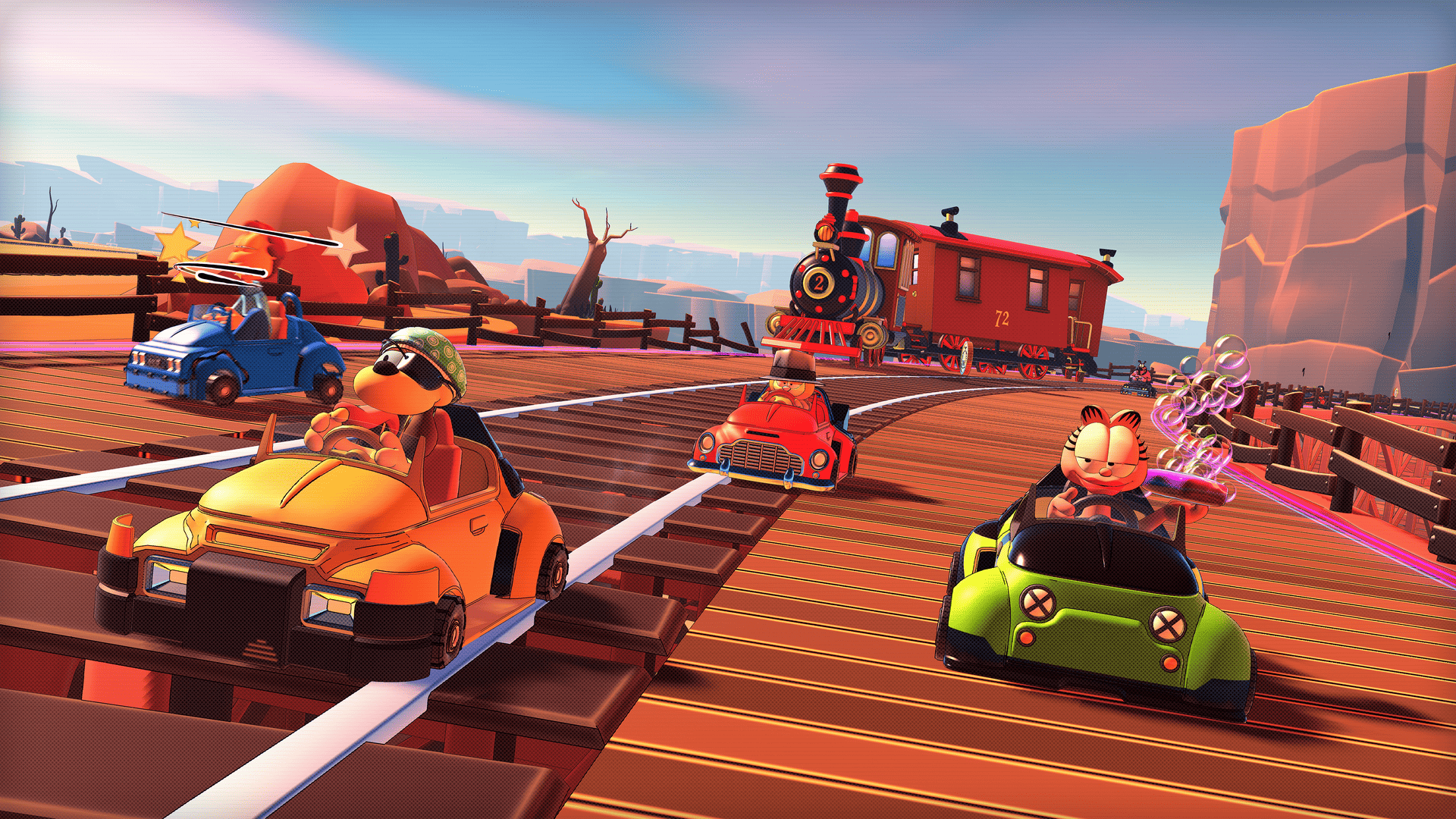 Faites rugir vos moteurs, Garfield vous attend sur la ligne de départ ! Incarnez l’un des 8 personnages cultes de l’univers de Garfield, préparez vos karts, personnalisez votre look et lancez-vous dans des courses effrénées.