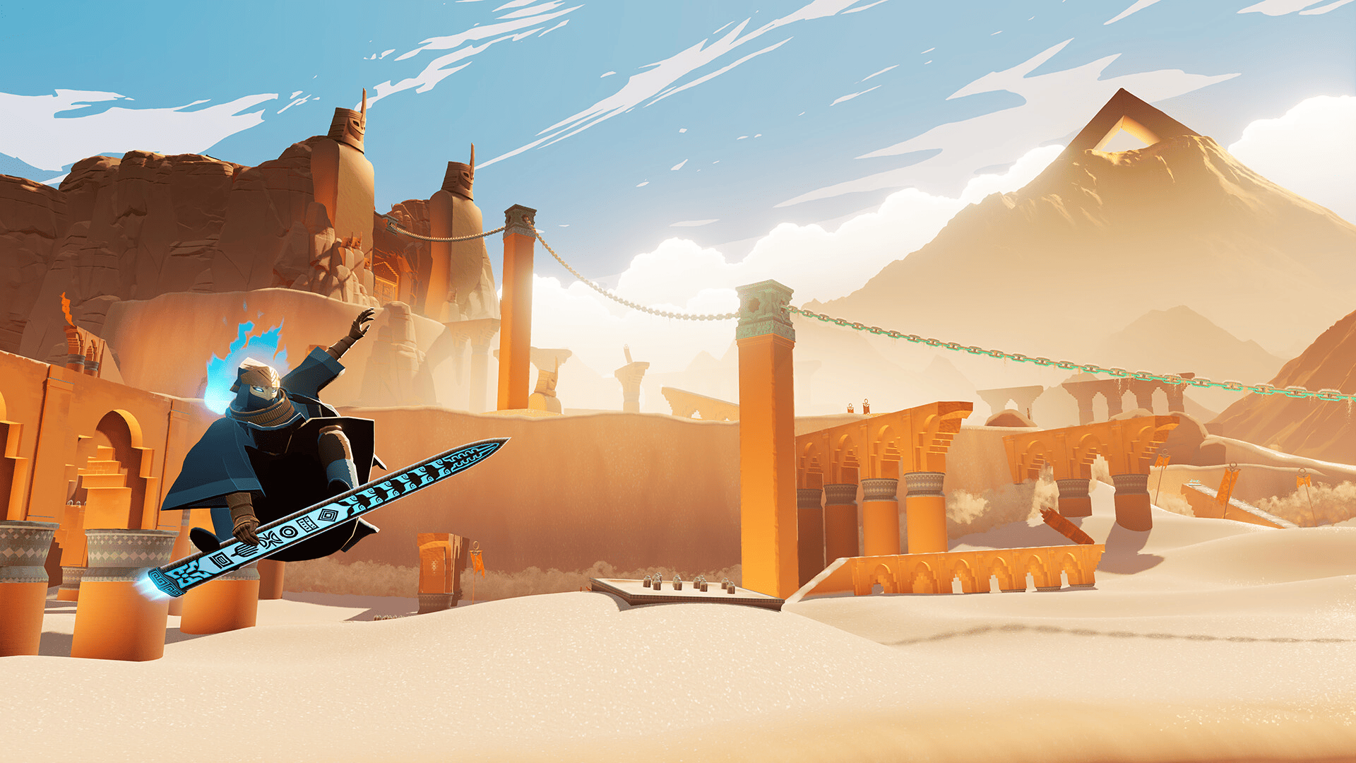 Tracez votre chemin sur votre Aéroépée, une puissante relique qui s’apparente à la fois à un snowboard, un skateboard et un surf. Prenez votre élan, atteignez des vitesses folles et décollez haut dans les airs depuis la crête de vagues vertigineuses. Réalisez des figures extravagantes : flips, spins ou grabs, tout est permis dans les halfpipes, sur les rampes et même les murs. C’est l’association inattendue, mais addictive, entre adrénaline et méditation.