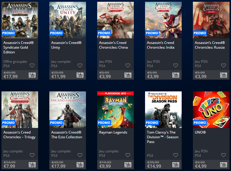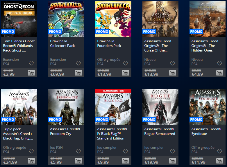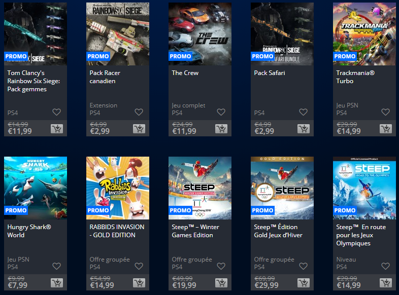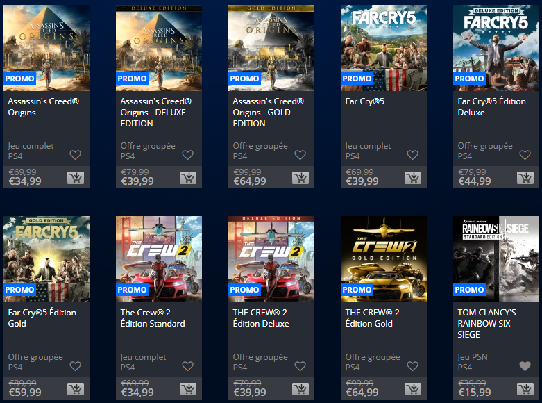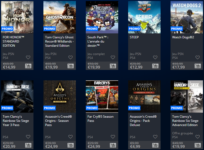 Pour ceux qui auraient loupé l’information, sachez qu’il vous est possible de bénéficier jusqu’à 60 % de réductions sur des jeux et extensions Ubisoft via le PlayStation Store. Assassin’s Creed Origins se retrouve à 34.99 €, The Crew 2 à 34.99 € ou encore Steep à 12.99 €. Voici sans plus tarder la liste complète des réductions proposées.