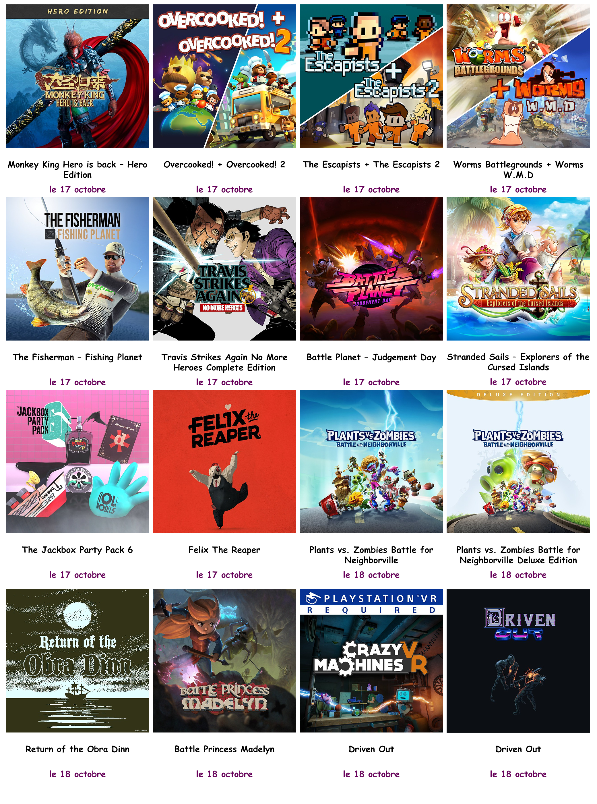 SONT GRATUITS AVEC LE PS+ D’OCTOBRE 2019:
