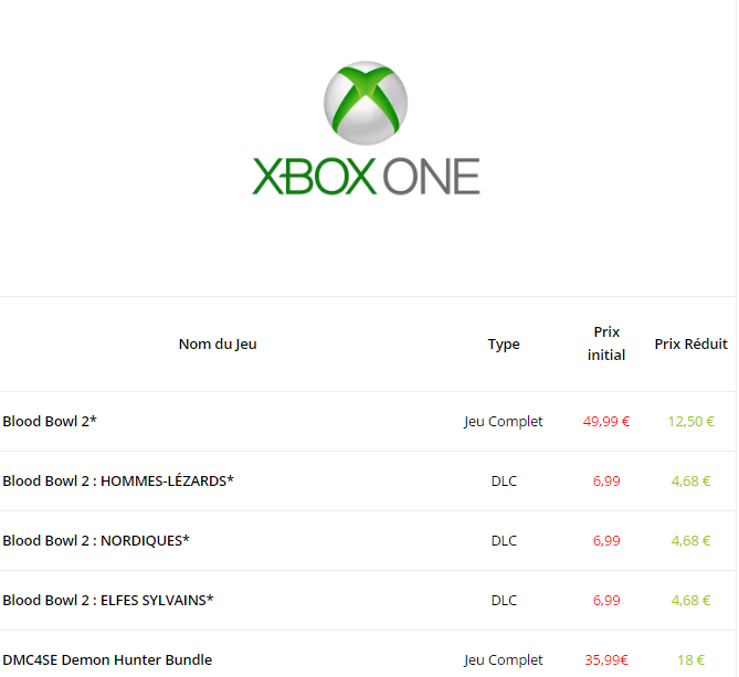 Comme tous les mardis, de nouvelle promotion sont dévoilées sur le marché Xbox Live. Cette semaine, des réductions sur Resident Evil et Blood Bowl 2 pour la Xbox One. Quant à la Xbox 360 nous avons du DmC Devil May Cry et DuckTales: Remastered