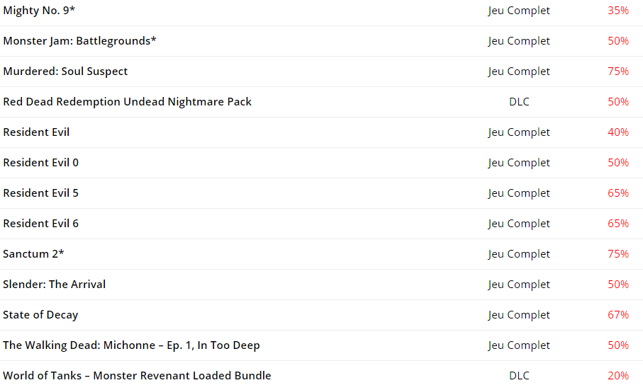 Comme tous les mardis, de nouvelle promotion sont dévoilées sur le marché Xbox Live. Cette semaine, des réductions sur Battleborn et les épisodes de Résident Evil pour la Xbox One. Quant à la Xbox 360 nous avons du Red Dead Redemption Undead Nightmare Pack et State of Decay