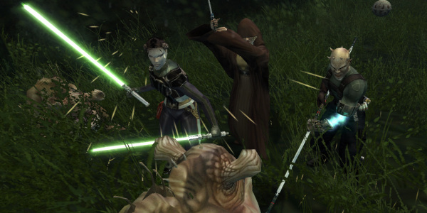 Un des RPG le plus connu de l’univers Star Wars c’est le cultissime Star Wars Knight of the Old Republic de Bioware qui vous propulse 4000 ans avant Star Wars IV un Nouvel Espoir durant une guerre entre un puissant seigneur Sith (répondant au doux nom de Dark Malak) et un Ordre Jedi affaibli par un conflit sanglant contre les meilleurs guerriers de la galaxie : les Mandaloriens. Vous débutez votre aventure en tant que simple soldat mais apprendrez plus tard dans le jeu à maîtriser la Force. Le jeu est juste exceptionnel avec son scénario très bien ficelé où vous pourrez vous comporter comme vous le souhaitez, vos choix vous feront pencher plus vers le Côté Obscur ou le Côté Lumineux ce qui changera votre apparence et vous permettra d’utiliser plus efficacement les pouvoirs du côté dont vous dépendez.