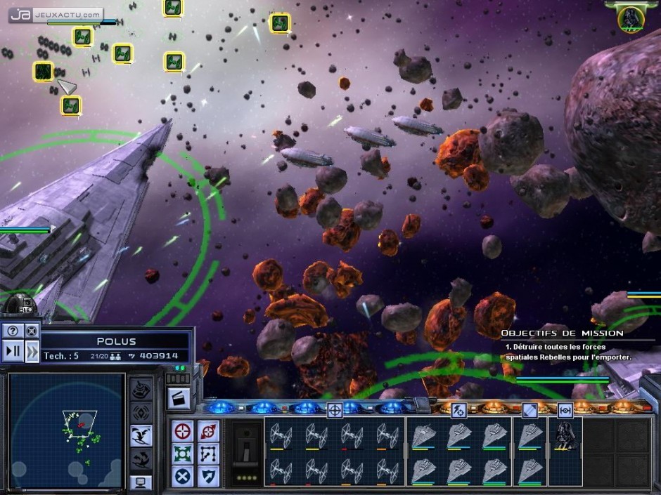 Le second jeu de stratégie est Star Wars Empire At War qui vous met à la tête de l’Alliance Rebelle ou de l’Empire. Dans ce jeu vous devrez gérer intelligemment vos crédits et vos armées spatiales et terrestres pour dominer la galaxie. Le point fort du jeu c’est les batailles spatiales qui sont vraiment très bien faite. Le jeu a eu droit à une extension nommée Force of The Corruption où une nouvelle faction entre en scène : le Consortium de Zahn. Zahn est un des anciens bras droits de Jabba le Hutt et a décidé de s’émanciper de lui pour former sa propre armée de pirates et de malandrins.