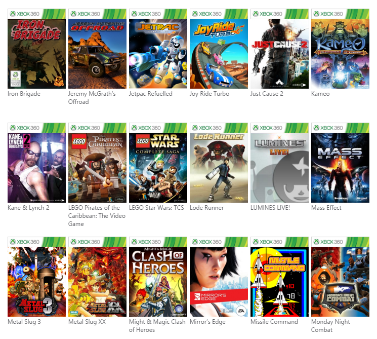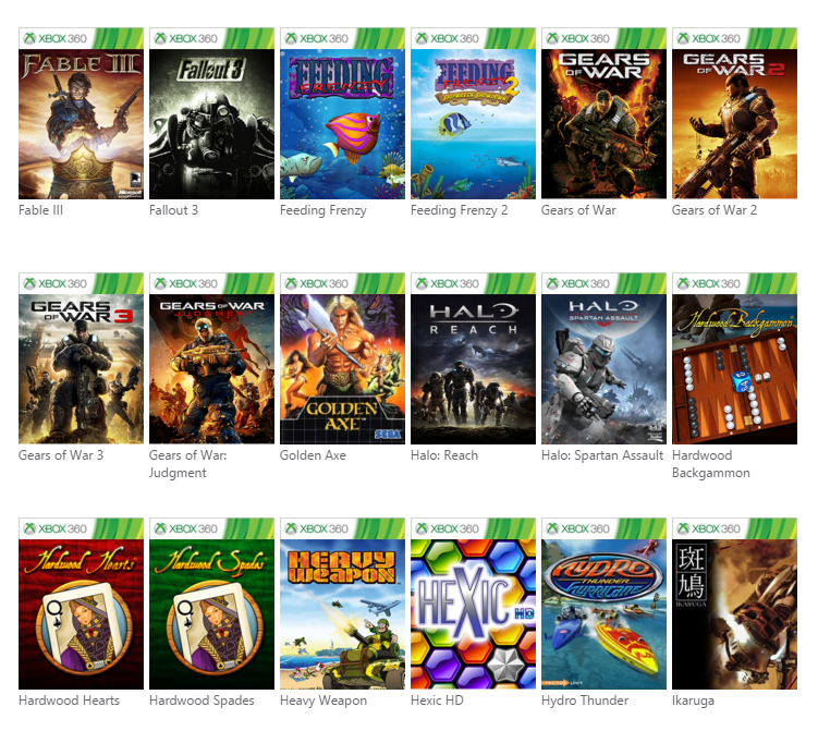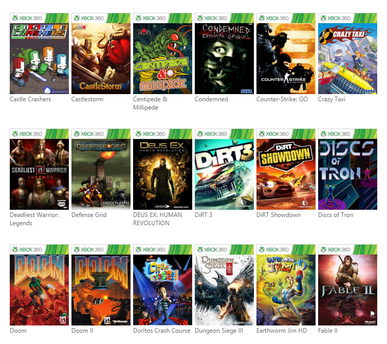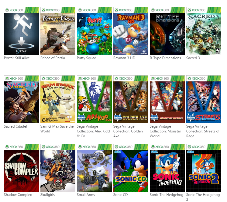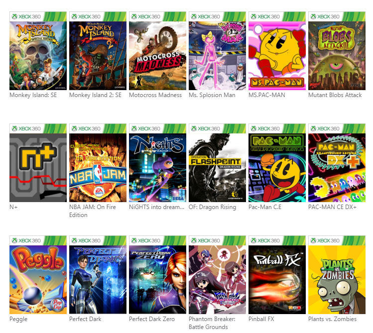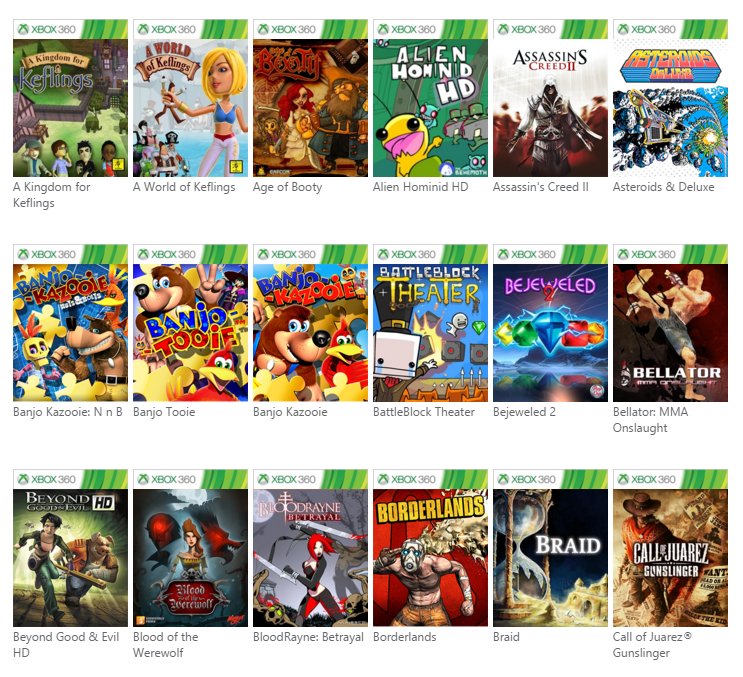 Voici la liste des nouveaux jeux rétrocompatibles :