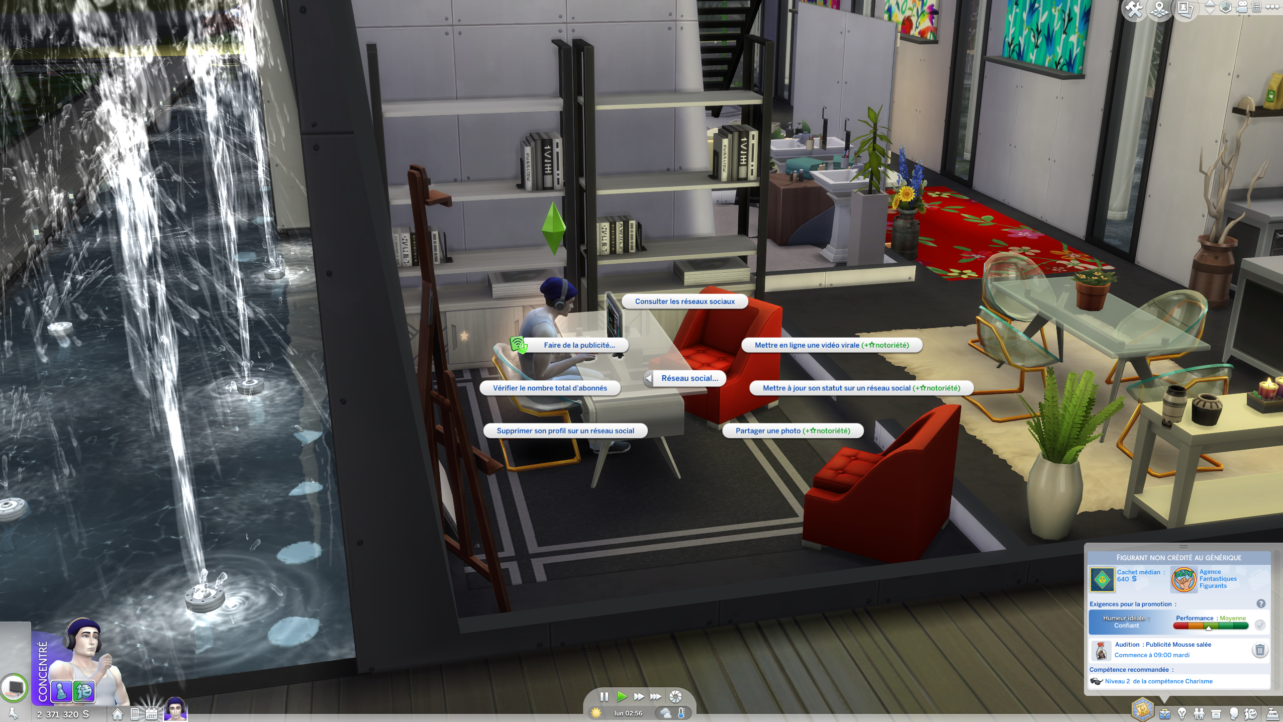 Pour cela, 3 nouveaux plans de carrières s’offrent à vous: acteur, chanteur et influenceur. La carrière d’acteur se trouve être en mode actif, cela signifie que vous pouvez suivre votre sims lorsqu’il se rend sur un tournage. Pour y accéder, il vous faudra passer des casting, en sélectionnant une audition, qui vous demandera d’avoir en votre possession un certain nombre de points de compétence dans divers domaine comme comédie, jeu d’acteur, charisme…