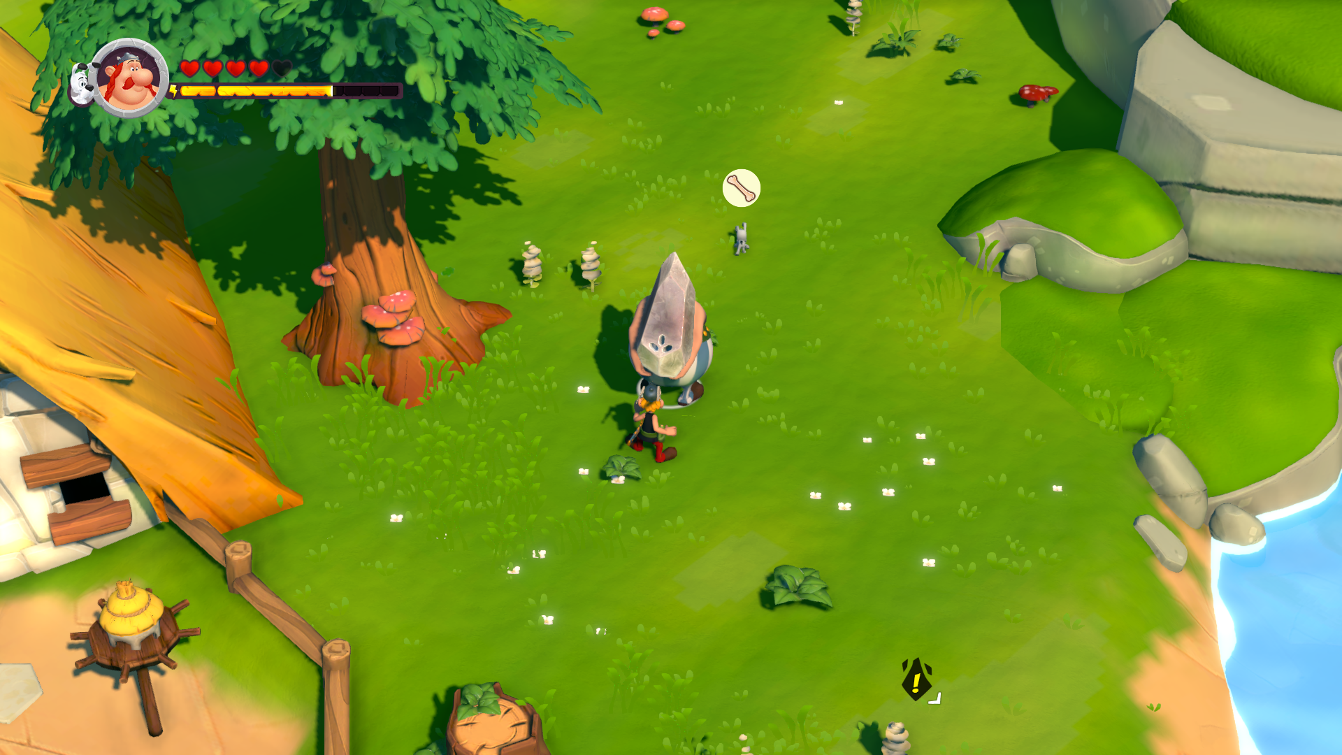 Pour démarrer, l’histoire débute dans la forêt ou nous retrouvons Astérix et Obélix qui sortent tout juste d’une chasse au sanglier. Il est temps de rentrer au village et c’est l’occasion de se familiariser avec les touches et facultés de nos deux compères.