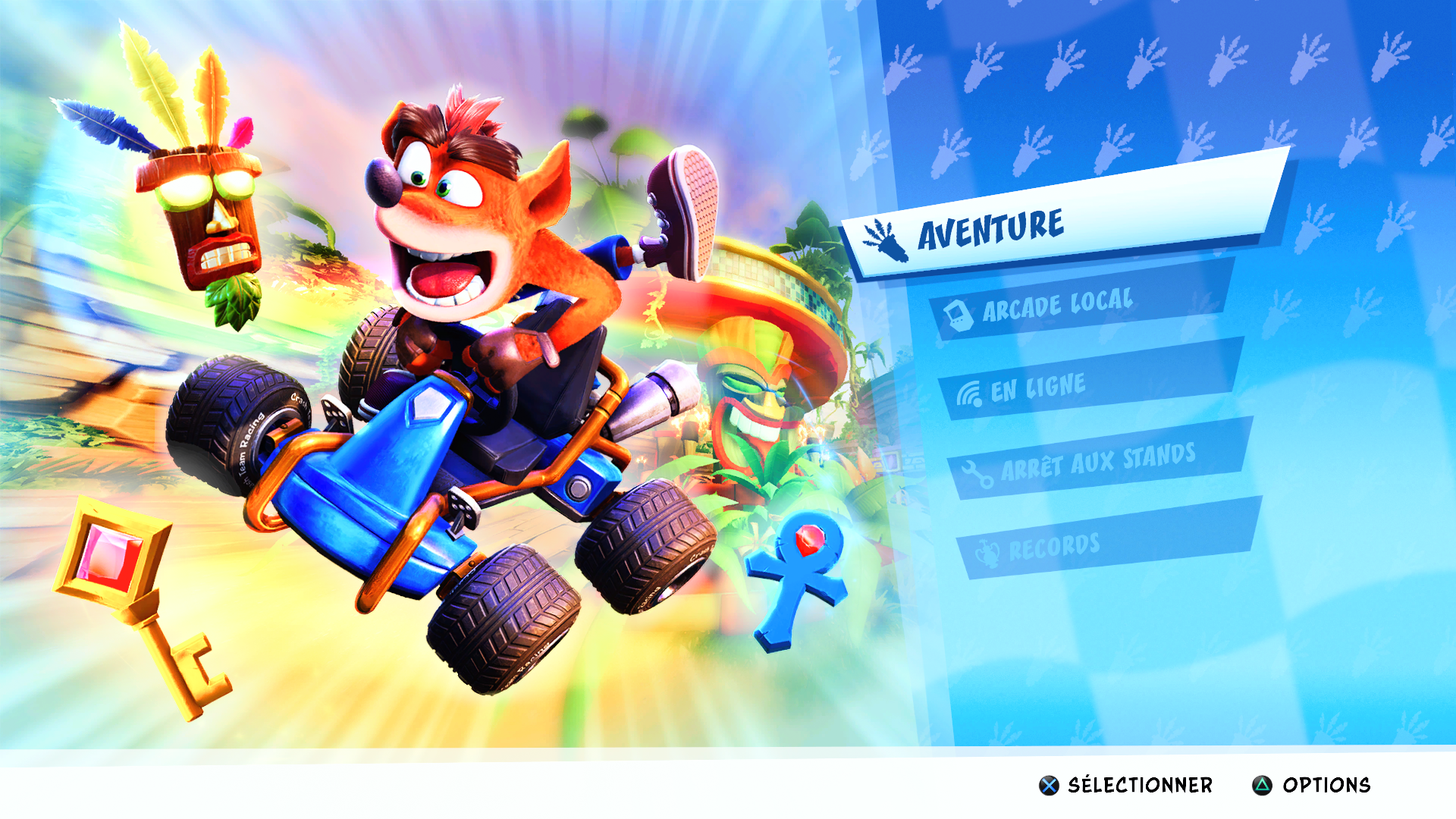 Côté mode de jeu, nous retrouvons tout ce qui peut se faire dans ce type de jeu. Outre le mode Aventure qui vous lancera dans une aventure solo, vous retrouverez le mode jeu Arcade Local. Plusieurs cas de figures se présentent à vous dans ce mode de jeu: le jeu en multi local et le jeu local mais en solo. Pour le côté multi, vous aurez les courses uniques, les courses de coupes qui enchaînent 4 courses de suite et enfin le mode combat. Pour le côté solo vous aurez l’incontournable contre la montre, la course de reliques, les défis CTR et les défis cristaux.
