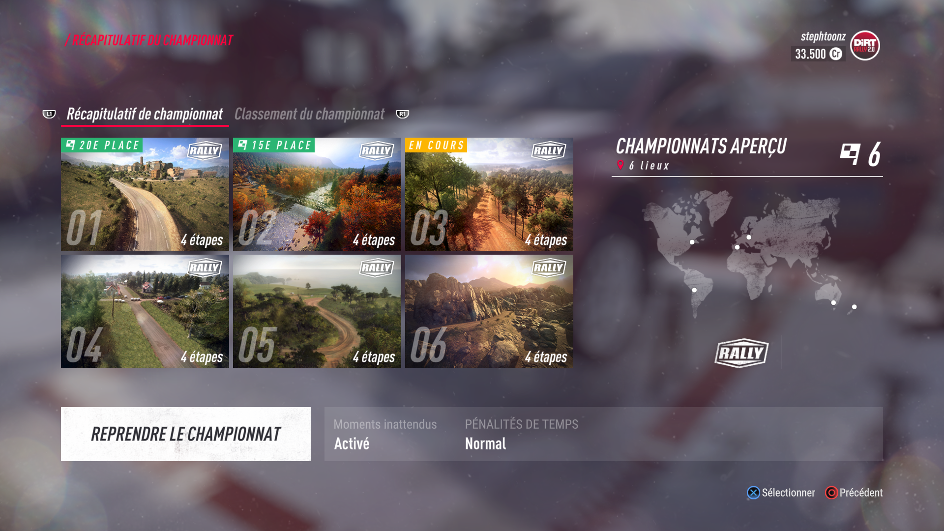 Rentrons maintenant dans le vif du sujet, je vais principalement traiter du mode épreuve puisque c’est dans ce mode que vous devriez passer 90% de votre temps lorsque vous jouerez à Dirt Rally 2.0. Dans ce mode vous aurez plusieurs types d’épreuves appelées carrières ainsi que des défis quotidiens et hebdomadaires.