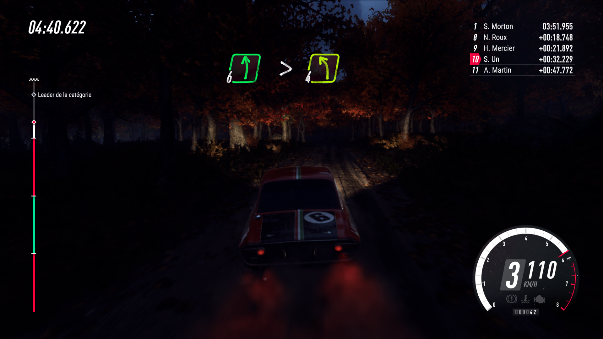 Le mode Carrière Rally se décompose en 6 parties, chacune étant composée de 4 étapes pendant lesquelles il va vous falloir briller si vous souhaitez être bien placé au classement. Ces étapes se déroulent sur des circuits ouverts, entendez par là que vous devrez partir d’un point A et rallier un point B dans le meilleur temps possible. Comme toutes les simulations, lors de ces étapes vous aurez des checkpoints réguliers pour vous dire où vous en êtes par rapport à vos adversaires, le leader de la course étant schématisé sur cette barre de checkpoint lui aussi pour vous indiquer si vous êtes devant lui ou pas. Les dégâts et réparations que vous devrez faire entre chaque étapes (selon votre conduite) vous prendrons un certain temps et il vous faudra parfois faire des choix afin de ne pas partir avec des secondes de pénalité. Il n’y a que lorsque vous débuterez une des parties que vous pourrez intégralement réparer votre véhicule sans subir de pénalités de temps.