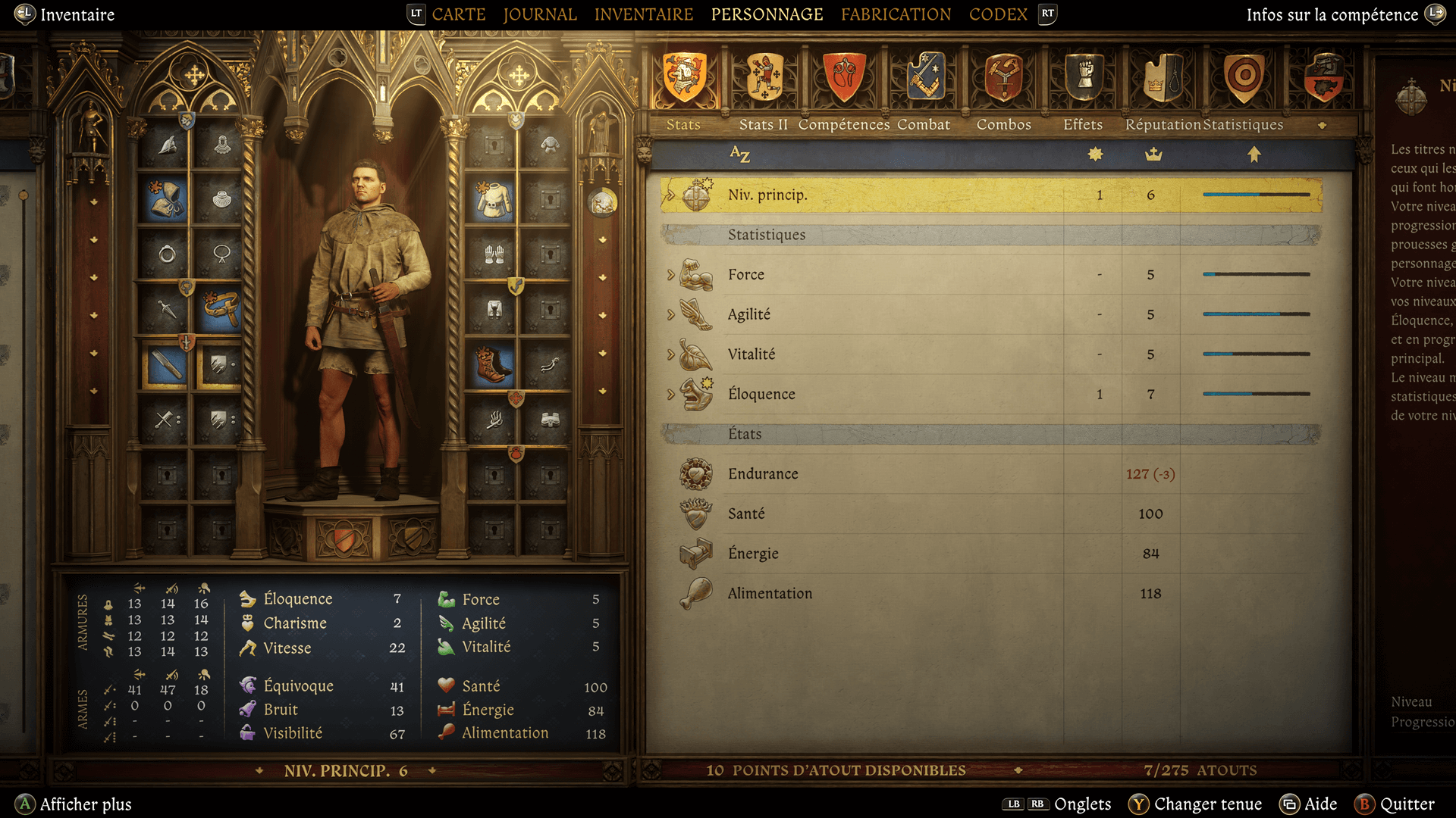 Armure sur le dos, épée en main, Henry se familiarise de nouveau avec les rudiments du combat : attaques, parades et ripostes s’enchaînent dans une leçon immersive qui permet aussi d’explorer l’interface du jeu et les statistiques d’équipement.