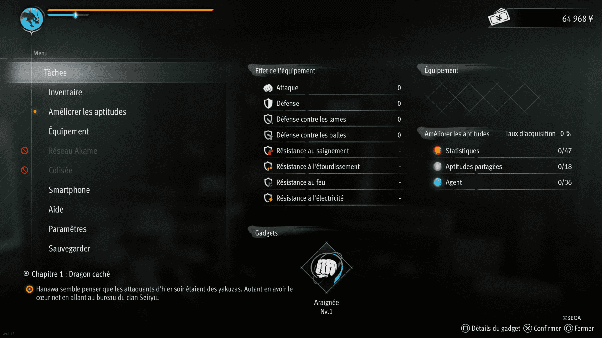 Bien évidemment la baston est au centre du jeu, puisqu’il faudra jouer des poings et des pieds pour arriver à se frayer un chemin au fil de l’aventure. Comme sa réputation le précède, et ce même s’il passera constamment son temps à nier être le Yakuza légendaires que tous affirment avoir reconnu, il sera forcément mis au défi régulièrement. Comme il a pris une retraite pendant un certain temps, notre cher ami a développé un style de combat à deux facettes. D’une part vous aurez le style agent, avec lequel vous combattrez en usant de gadgets que vous pourrez dégotter et améliorer tout au long de l’aventure (ça c’est la pilule bleue). De l’autre vous aurez son style Yakuza, plus brutal, avec lequel ses poings et ses pieds seront des armes destructrices (là c’est plus la pilule rouge)