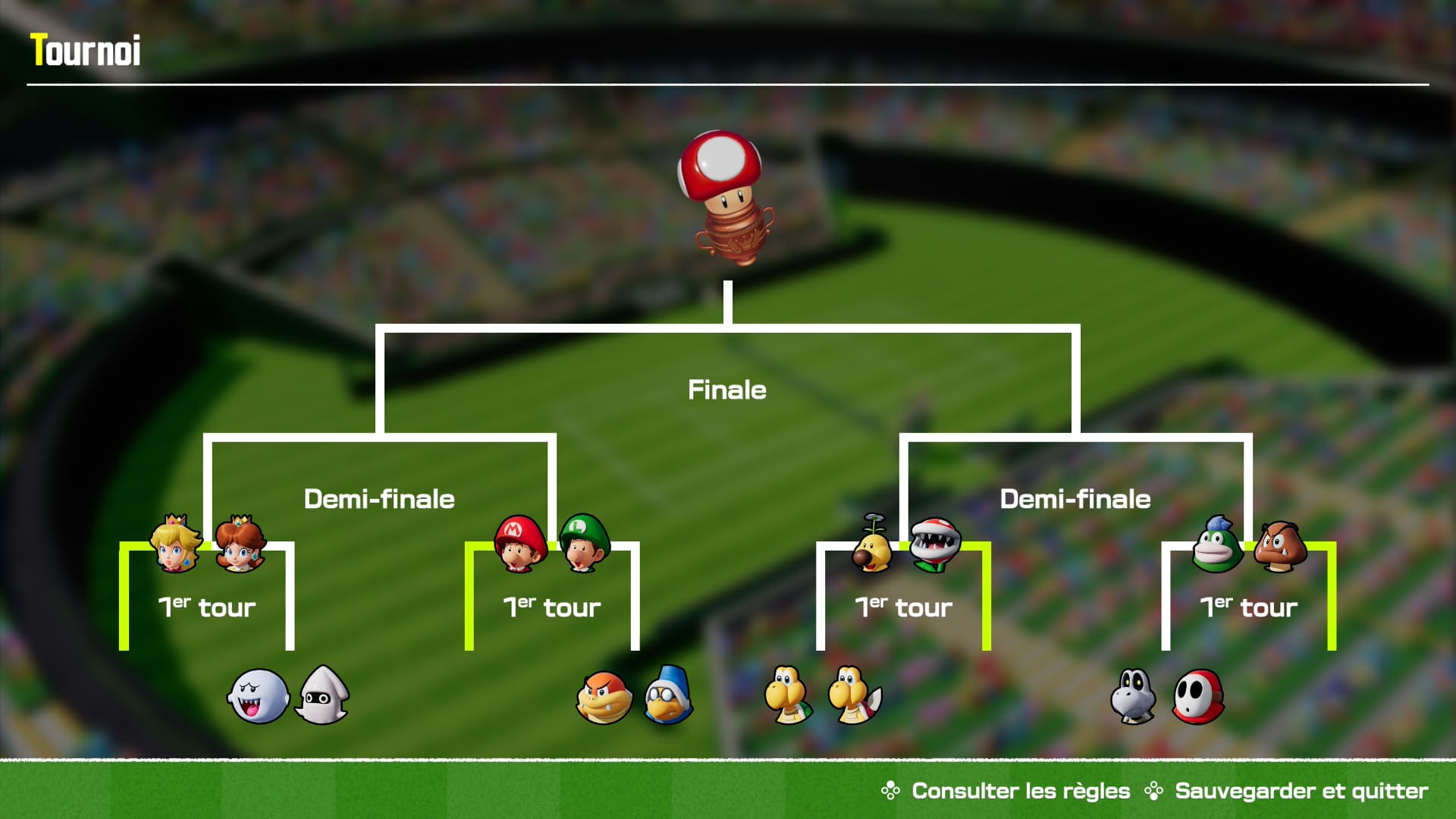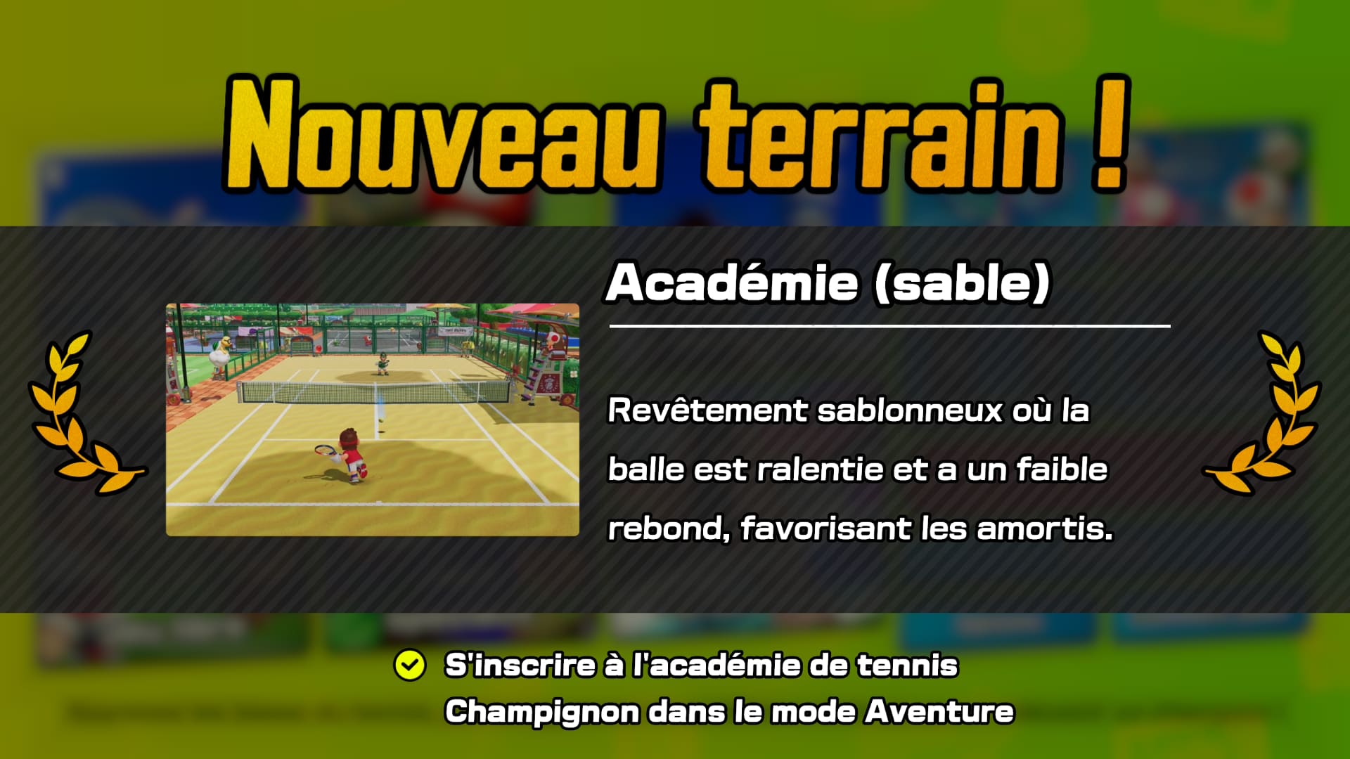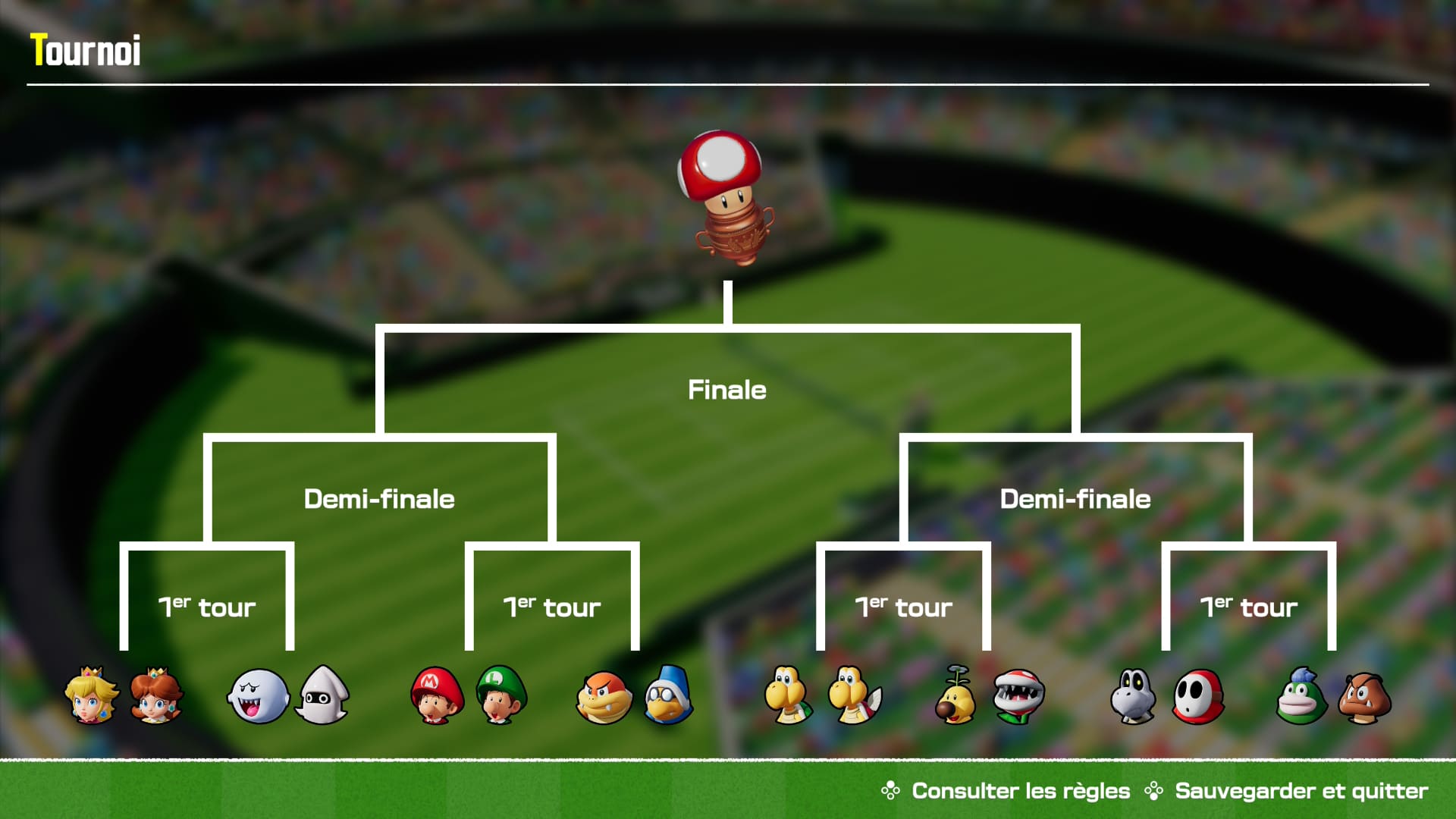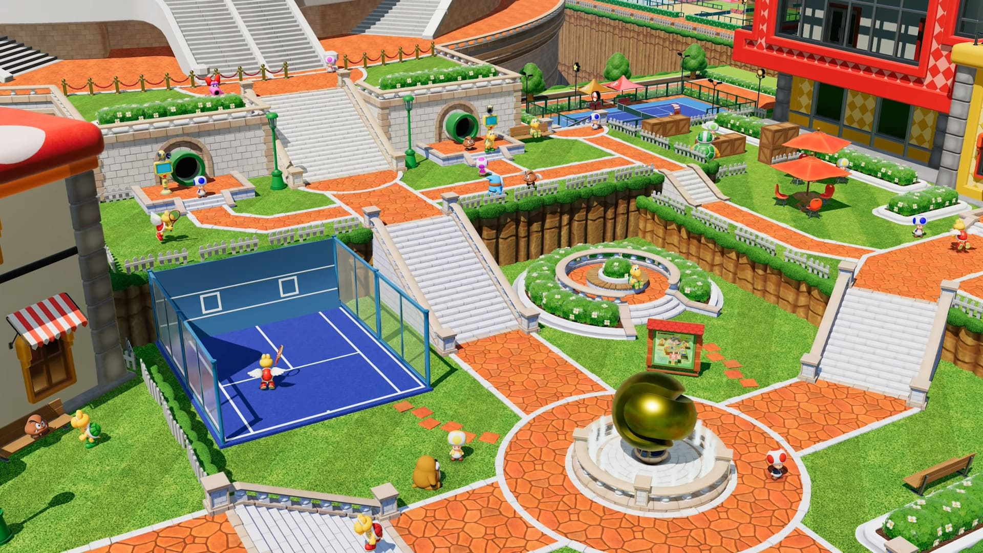Dès l’écran de lancement, Mario Tennis Fever impose une identité visuelle immédiatement reconnaissable. Les terrains sont inspirés du Royaume Champignon et chacun est richement décoré avec des éléments interactifs et colorés. Les personnages emblématiques de Mario – de Luigi à Bowser en passant par Yoshi et Peach – sont animés avec soin, et chaque coup, smash ou effet spécial bénéficie d’animations spectaculaires qui donnent un vrai dynamisme aux matchs.