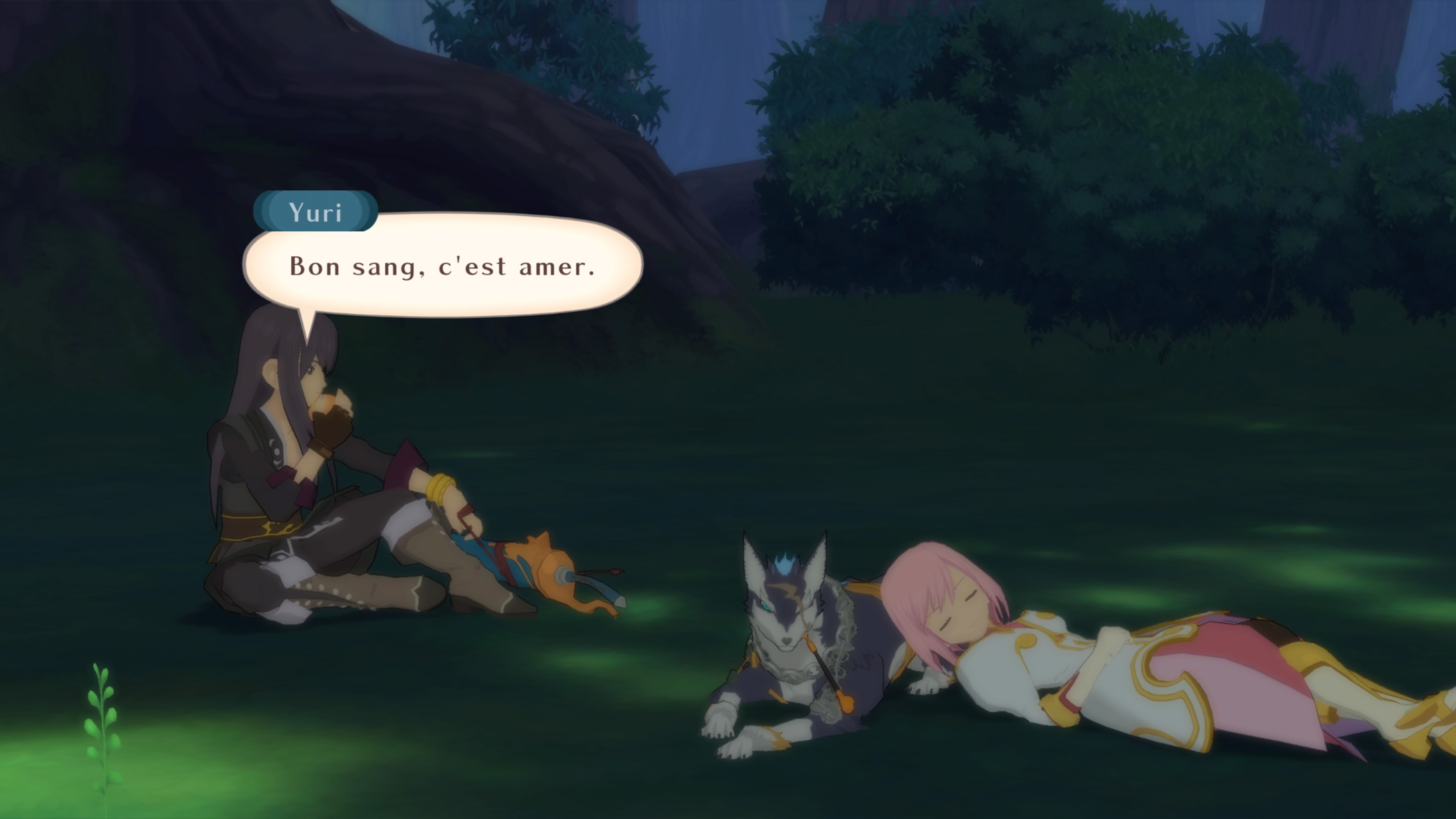 La particularité (de l’époque) est le caractère du héros. Contrairement aux précédents opus (voir la majorité des itérations) le héros n’est pas une éternel optimiste joyeux et pré-pubère, mais un adulte ayant roulé sa bosse et cynique sur son pays et sa condition. Il reste, au final bon et généreux mais coté « Han Solo » dénote et ajoute une part sombre intéressante. Bien sûr on est très loin de Velvet dans Tales of Berseria (l’épisode le plus sombre de la série), mais cela change un peu du côté « cucul » récurrent des héros de la série.