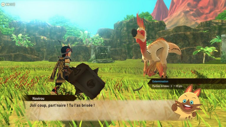 Toute cette longue partie dans ce village sert donc de tutoriel géant qui nous apprend tout ce qu’on doit savoir sur cette nouvelle approche de gameplay. Toute l’histoire ne se concentre pas sur un village mais sur plusieurs répartis sur 5 régions à la faune et flore différentes. Pour cela, on est aidé par le chef du village et Kayna jusqu’à l’arrivée de Navirou le fameux Félyne.