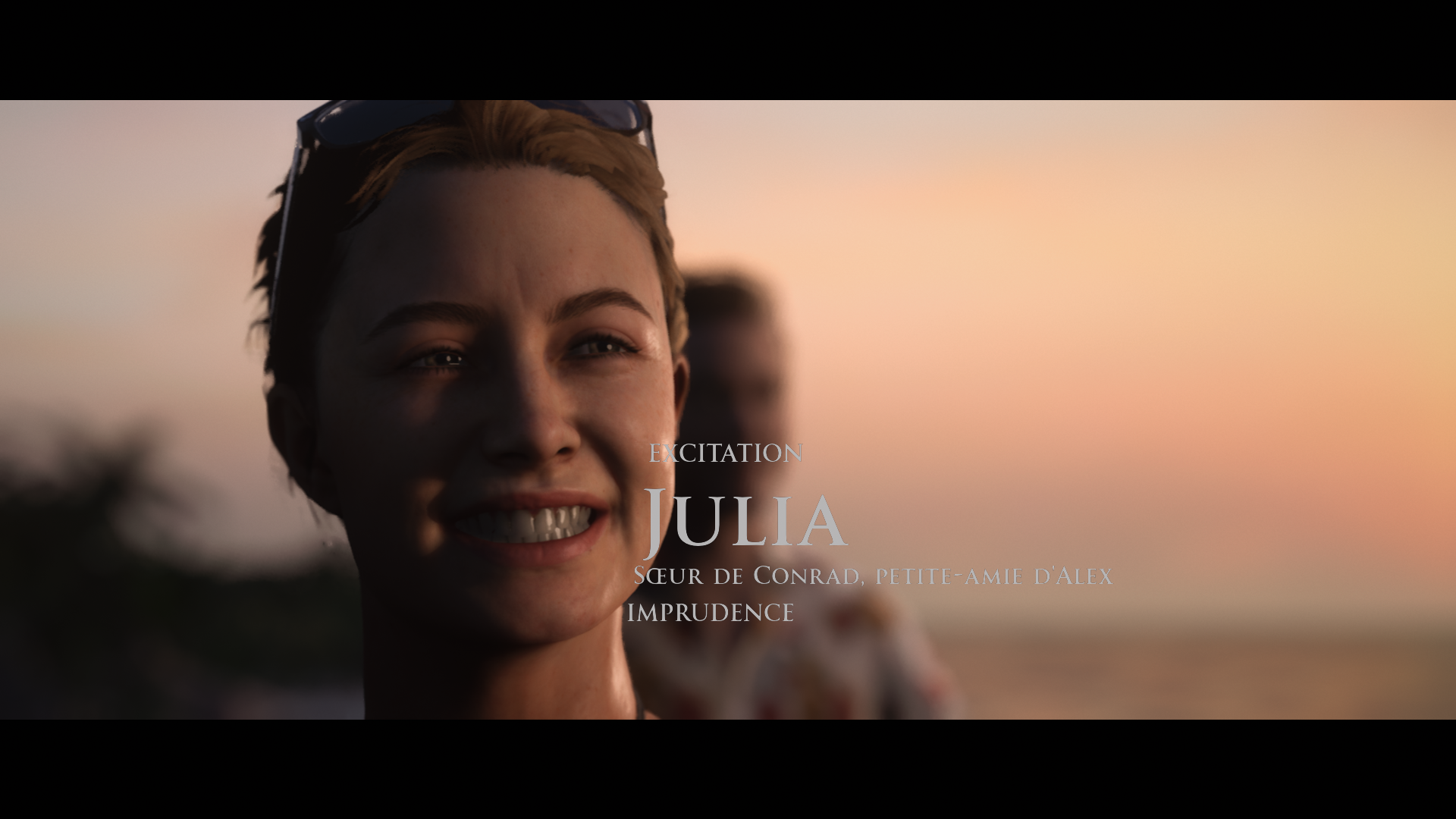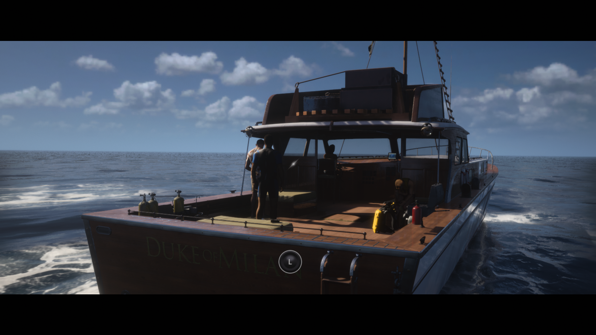 Alors non, comme l’indique le titre, ce ne sera pas vers quelque chose de sexuel que vous allez vous tourner, dommage pour vous. Vous suivrez les pérégrinations de 5 « aventuriers » des mers. Nous avons donc Conrad qui est le frère de Julia, petite amie d’Alex qui est lui-même le frère de Brad. Il manque une personne me direz vous, je vous répondrais que vous avez absolument raison, en fait toute cette petit troupe va embarquer sur le Duke of Milan le bateau de Fliss qui a la tâche de convoyer tout le monde. Les relations entre chaque personnages vous permettrons d’orienter la façon dont chaque personne interagit avec les autres, mais on aurais aimé que ces relations aient une réelle incidence dans les comportements, en effet selon tel ou tel choix, le jeu vous signifiera que le lien entre deux personnes a évolué, mais finalement en dehors d’une ligne de texte à l’écran, ça n’a aucune incidence dans le cheminement de l’histoire. Et c’est là le premier point dans lequel pêche (sans mauvais jeu de mot) le titre. En effet, on va vite se rendre compte que finalement l’important dans le jeu ça ne sera pas d’arriver à faire évoluer les relations entre les personnages, mais surtout de ne pas vous planter dans les séquences de QTE anxiogènes (on y reviendra plus bas)