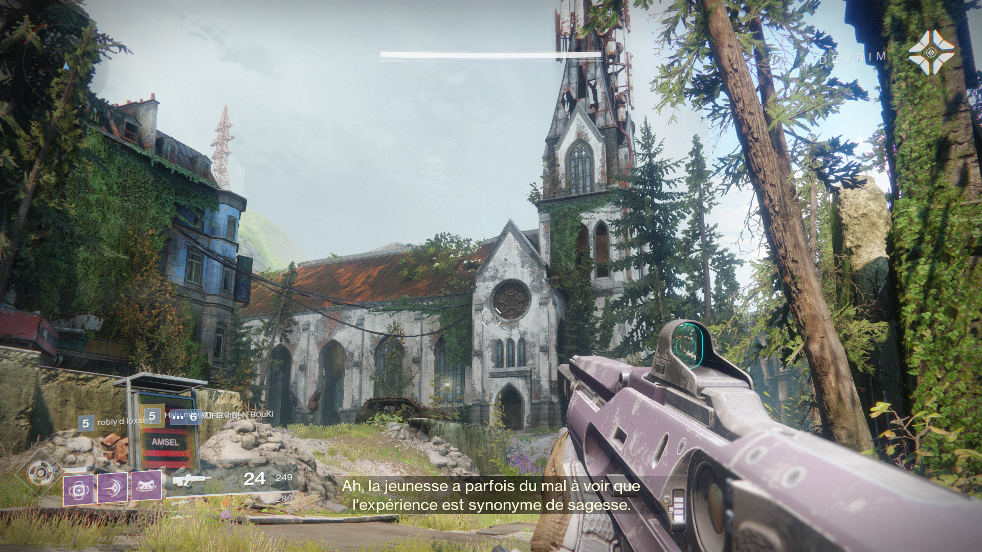 Destiny 2 vous propose donc de partir en quête des survivants de l’attaque mais également de votre ancien pouvoir, en effet seul une doctrine est disponible au début du jeu (la nouvelle en l’occurrence). Vous commencez donc en Europe dans les terres mortes, avec pour objectif de contacter l’un des éclaireurs de Suraya. Ce dernier vous donnera vos premières missions.