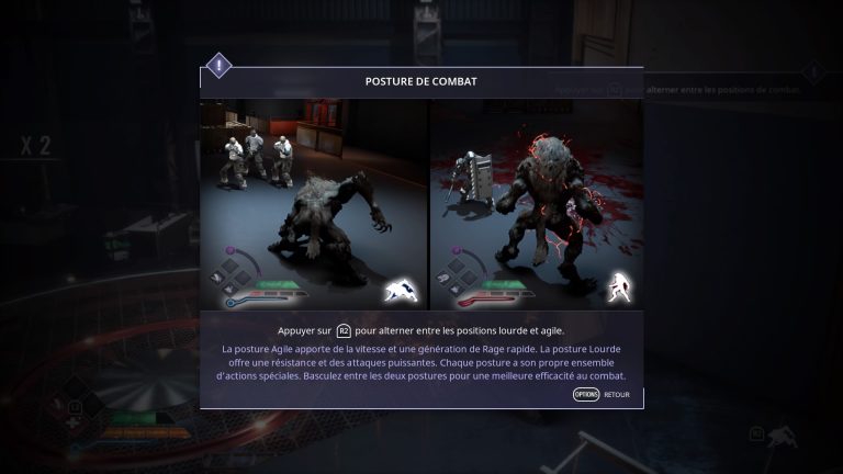 La pose de base lui confère agilité et rapidité. D’une simple pression de la gâchette, il se redresse sur ses 2 pattes, il devient plus imposant mais plus lourd et aussi plus agressif. Les boucliers ne font pas long feu. Il sera utile aussi d’utiliser des exécutions féroces et des coups spéciaux. Pour cela, un arbre de compétence est mis à notre disposition pour évoluer.. malheureusement, on apprend vite à nos dépens que le simple matraquage des touches d’attaques et de position suffise face à une IA râtée et sans grande résistance.