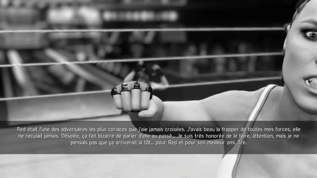 Un des seuls points positifs de ce jeu, ce sont les différents modes bien fournis qu’on a l’habitude de côtoyer. On commence par les dames. Charlotte Flair, Sasha Banks, Becky Lynch et Bayley nous racontent leurs aventures et l’ascension des femmes sur le ring. C’est assez agréable d’autant que c’est entrecoupé d’interviews de nos 4 stars. Ce mode nous demande de suivre des actions bien spécifiques dans les combats.