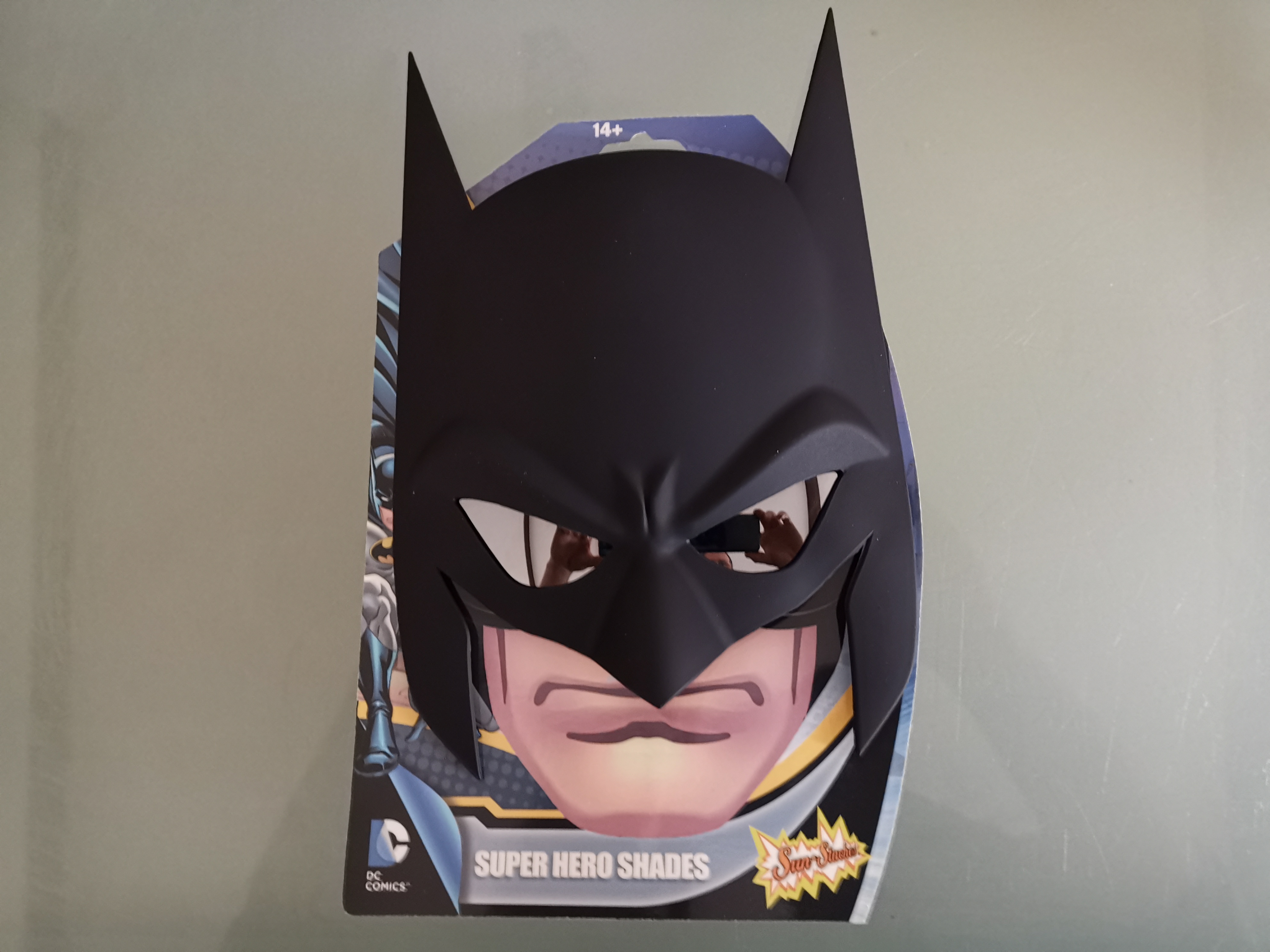 Et enfin pour terminer, ce que je pense être le produit bonus (je vous expliquerais plus loin pourquoi je pense que c’est lui), un masque lunettes de soleil à l’effigie du masque de notre ami.