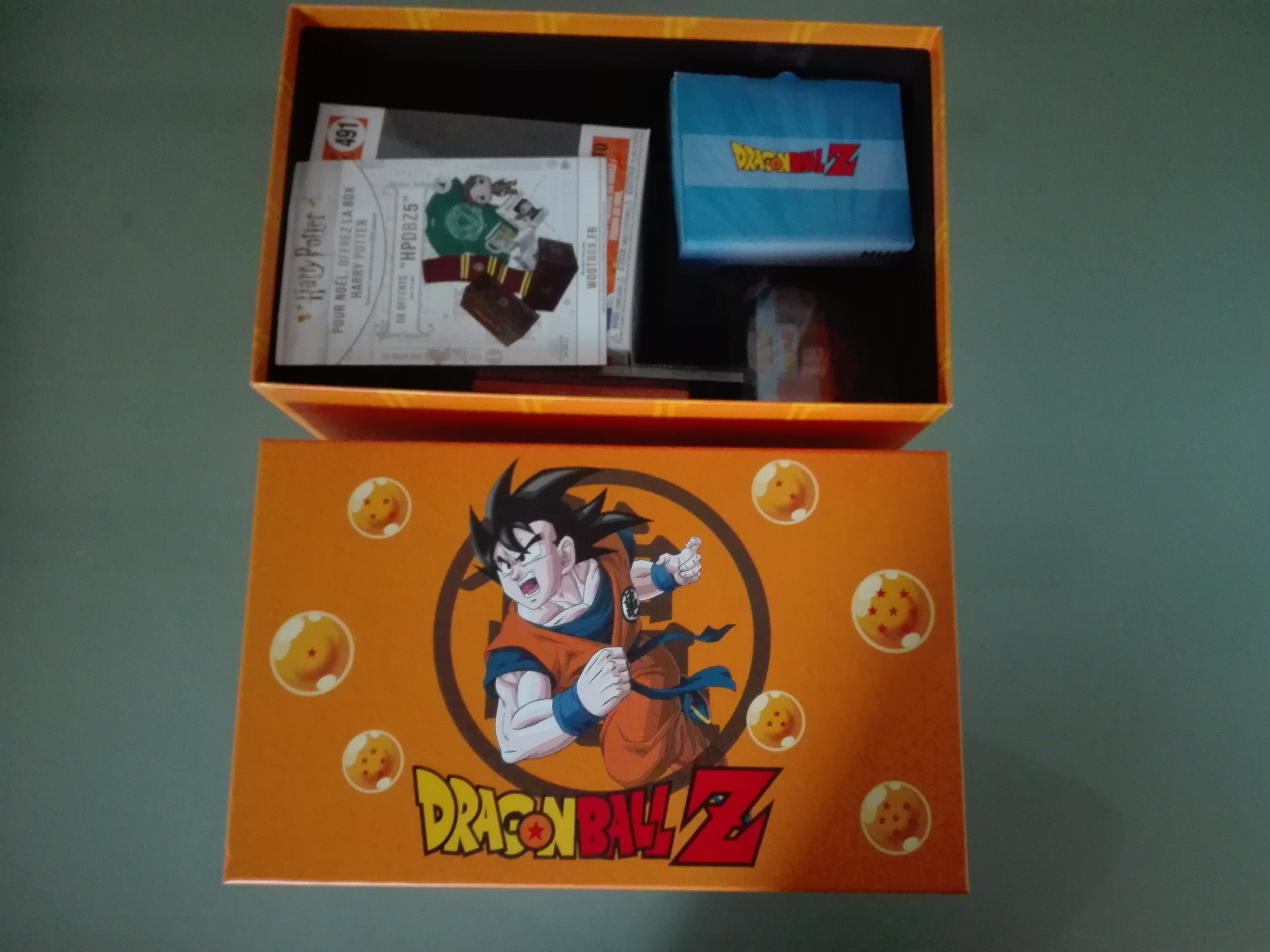 Une fois ouverte, l’emballage laisse dévoiler une belle boite en carton dur à l’effigie des héros du manga mis à l’honneur dans cette box hors-série: c’est bien entendu une wootbox spéciale Dragon Ball Z. Le carton rigide horné d’un sangoku paré à l’attaque et entouré des boules permettant d’invoquer Shenron, nous espérons qu’en l’ouvrant nous n’aurons pas à devoir l’invoquer.