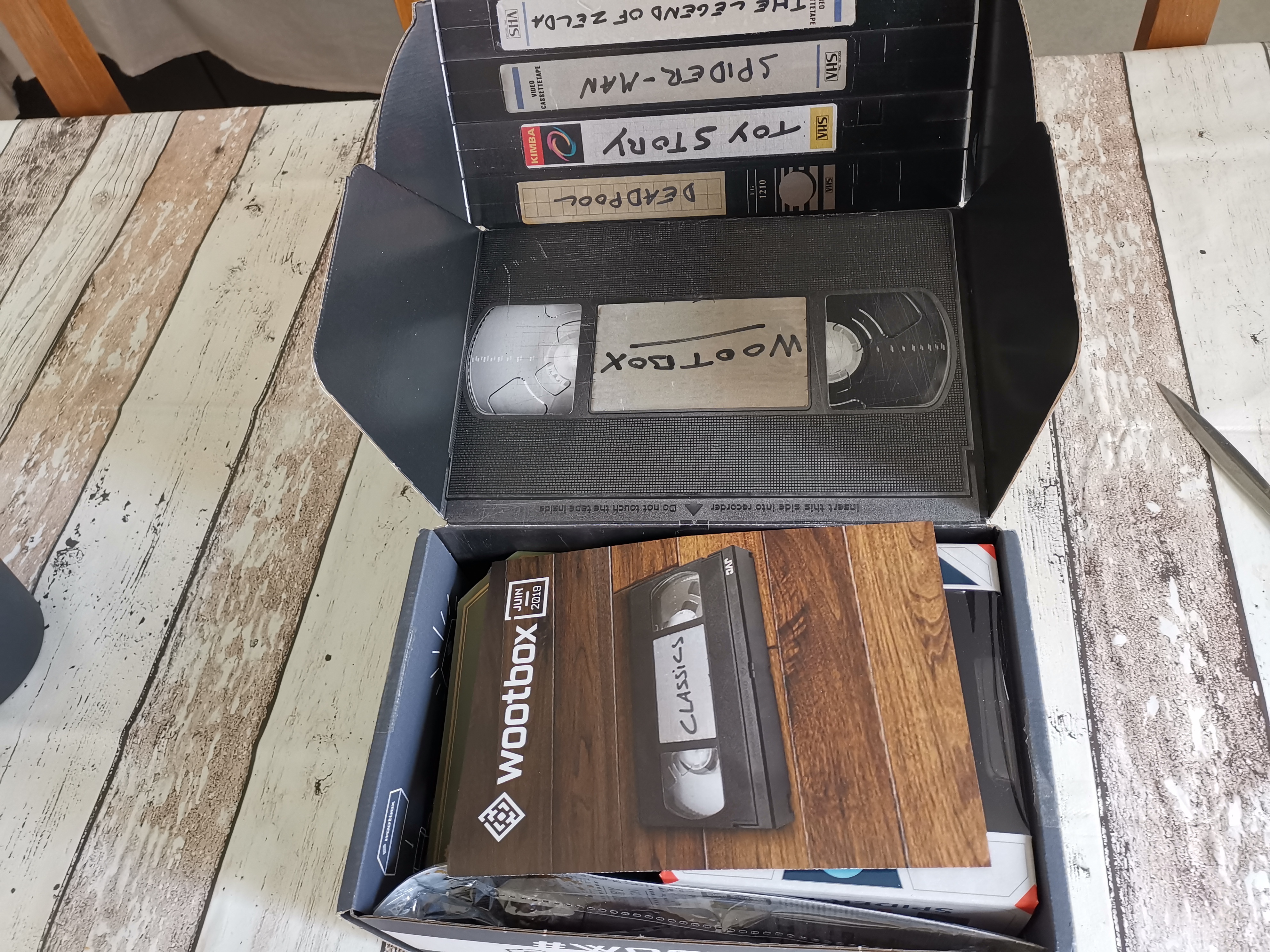 La face réversible de la boite ce mois-ci représente des objets que certains d’entres vous n’ont peut être jamais connus: des cassettes VHS, cet ancêtre des Dvd et des BluRay, si vous avez des anecdotes avec vos anciennes VHS n’hésitez pas à nous les partager en commentaires.