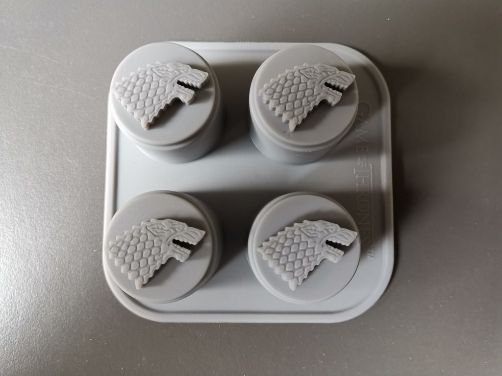 Si après vos batailles, vous prenez un coup de chaud, la famille Stark et sa devise « Winter is Coming » (ou l’hiver vient pour les puristes du français) viendrons vous refroidir avec un moule à glaçons à l’effigie de leur blason.